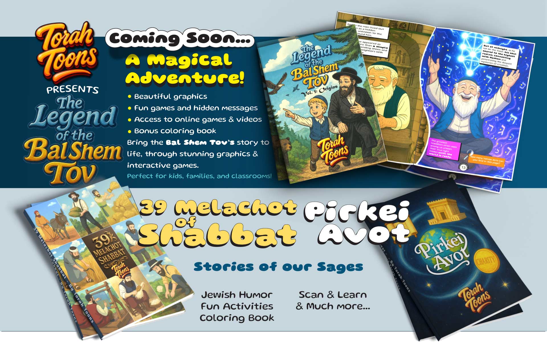 Ancient Jewish wisdom becomes epic adventures, comics, and living stories about Torah and holidays.